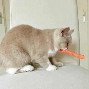 De Crazy Hunter is een hengel van Kattenveertjes en er zit dan ook, niet verbazend, standaard een kattenveertje aan. Hij is gemaakt van hout en daardoor heel stevig. Als Marble een prooi vastheeft dan houdt ze hem heel stevig vast waardoor er best wat handigheid en kracht nodig is om hem los te krijgen, maar deze hengel kan dat zeker aan. Er zit een lang touw aan waardoor je het veertje heel makkelijk door de kamer laat vliegen. Daarnaast zit er een handig haakje aan het uiteinde van het touwtje wat voorkomt dat het speeltje van het touwtje komt. Ook handig dat je dus makkelijk een nieuw speeltje eraan kan hangen. Er zijn voor de Crazy Hunter verschillende vervangende onderdelen en alternatieve speeltjes te koop.